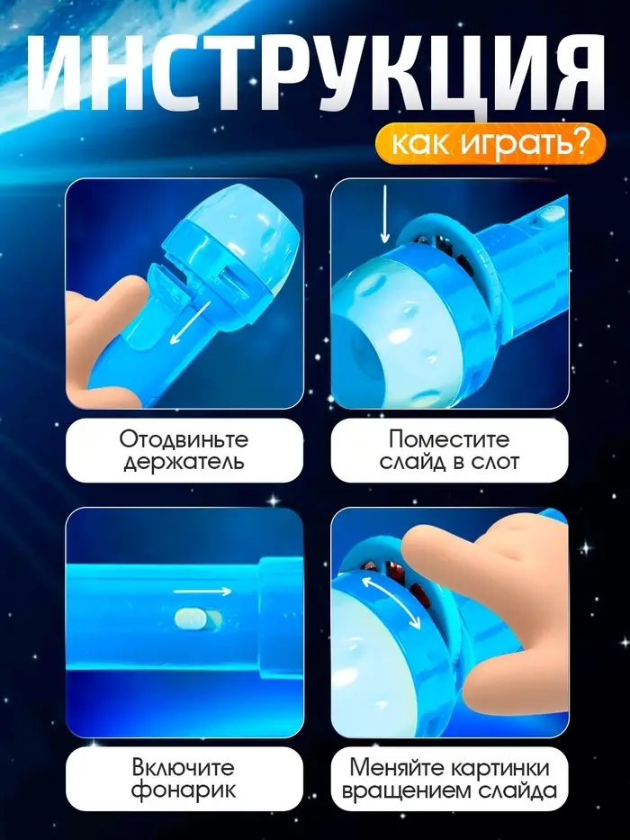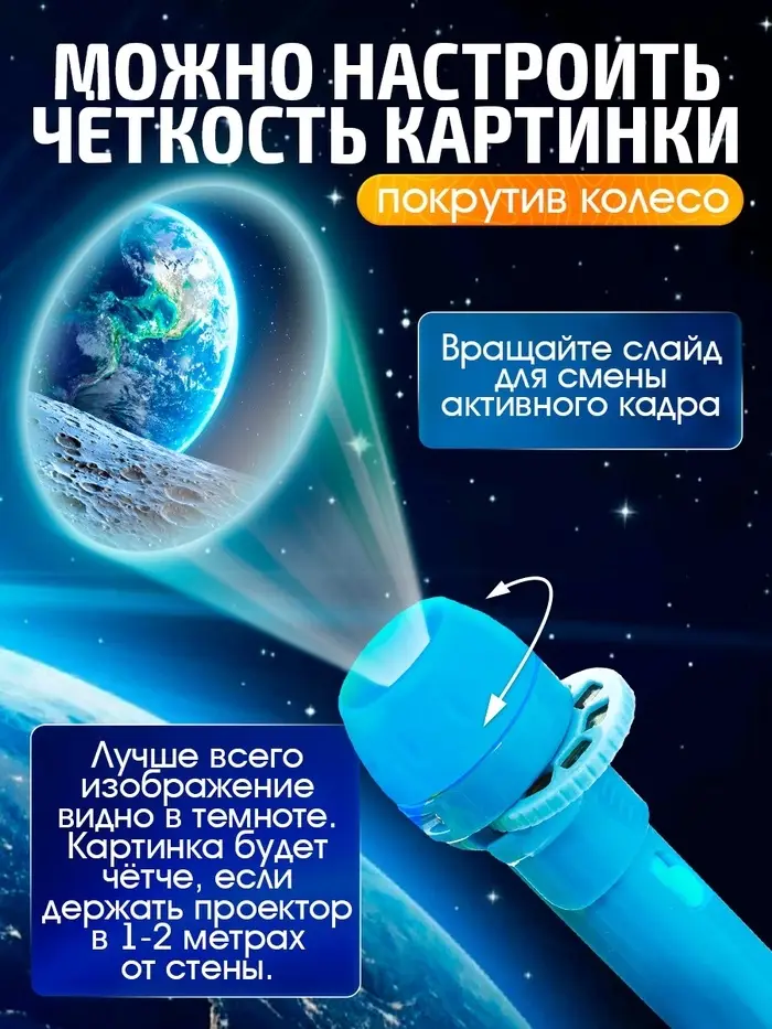 Проектор-фонарик «Космос» станет прекрасным началом для развития творческих способностей ребёнка.