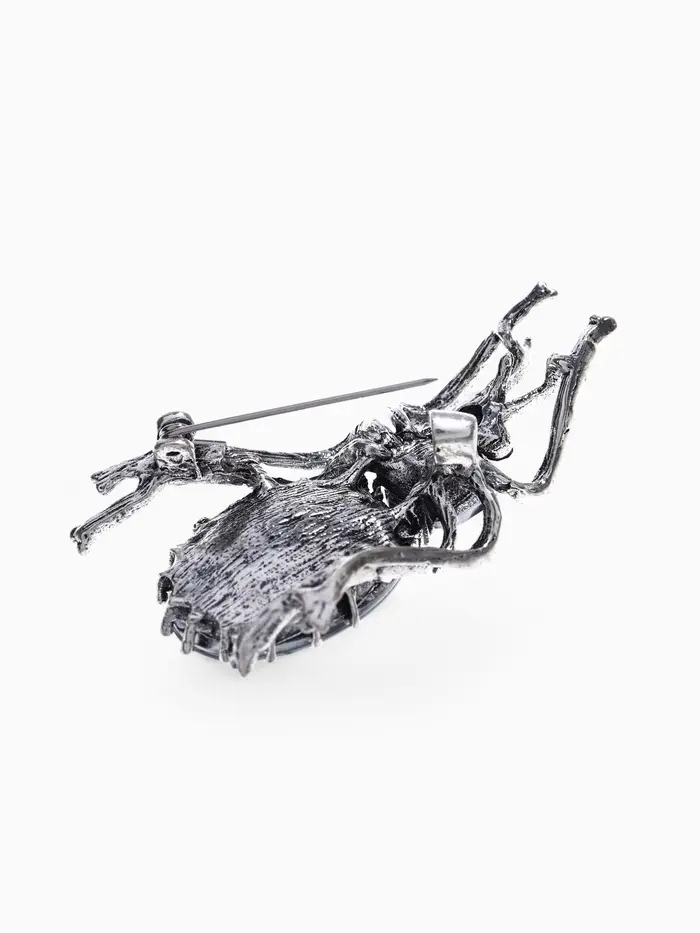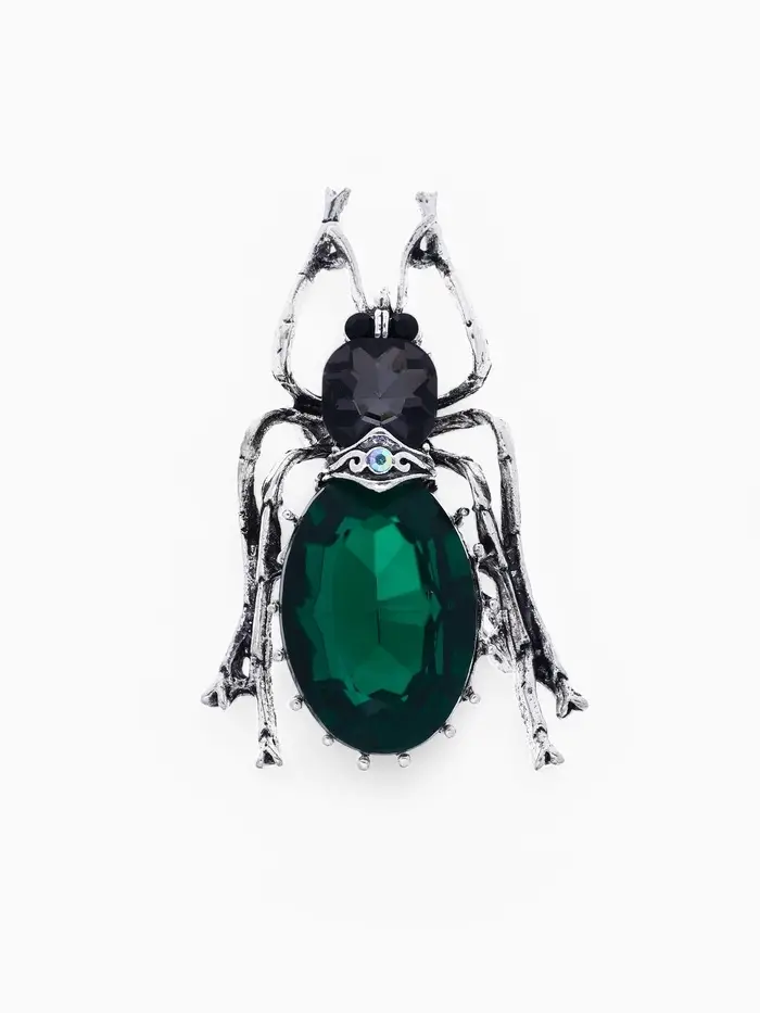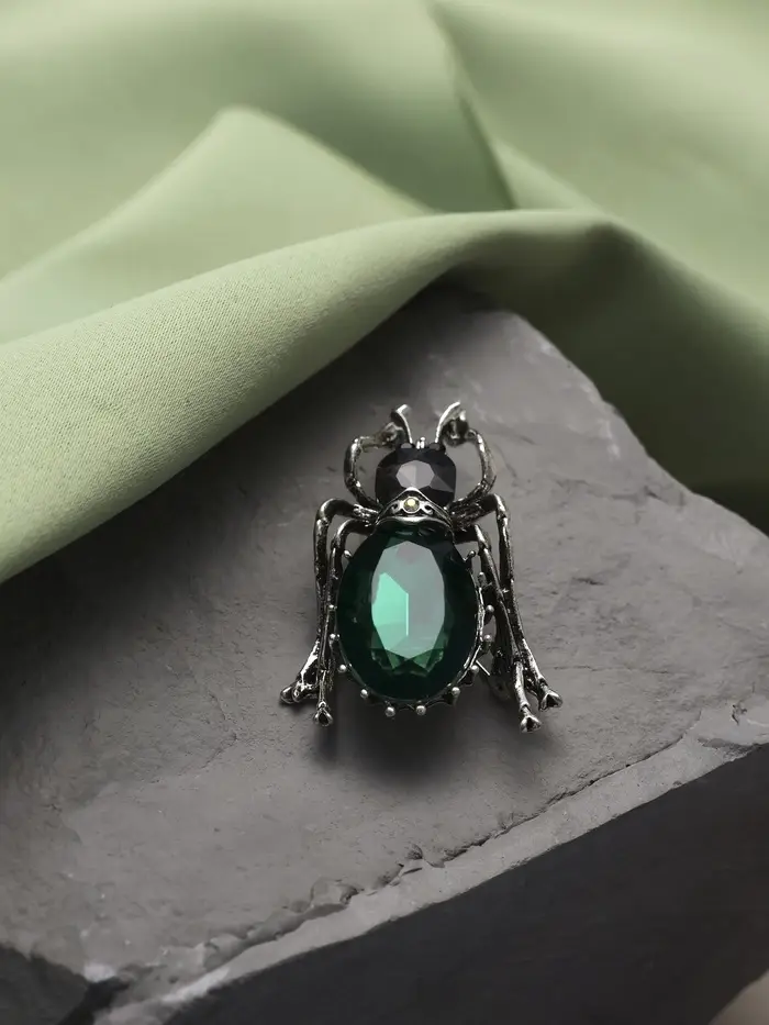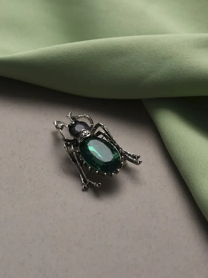 Эта брошь в виде жука станет настоящим украшением для вашей коллекции аксессуаров. Изготовленная из качественного металла с чернёным серебром и декорированная серо-зелёными стразами, она привлекает внимание своим уникальным дизайном и изысканным исполнением. Размером 5,5 см, она прекрасно дополнит как повседневный, так и вечерний наряд, добавляя изюминку и стиль.