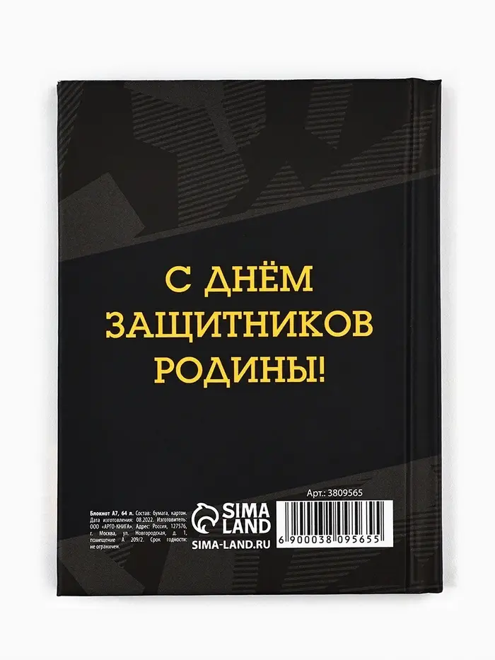 Блокнот А7, 64 л. в твердой обложке, 23 февраля «С Днем Защитника Отечества»