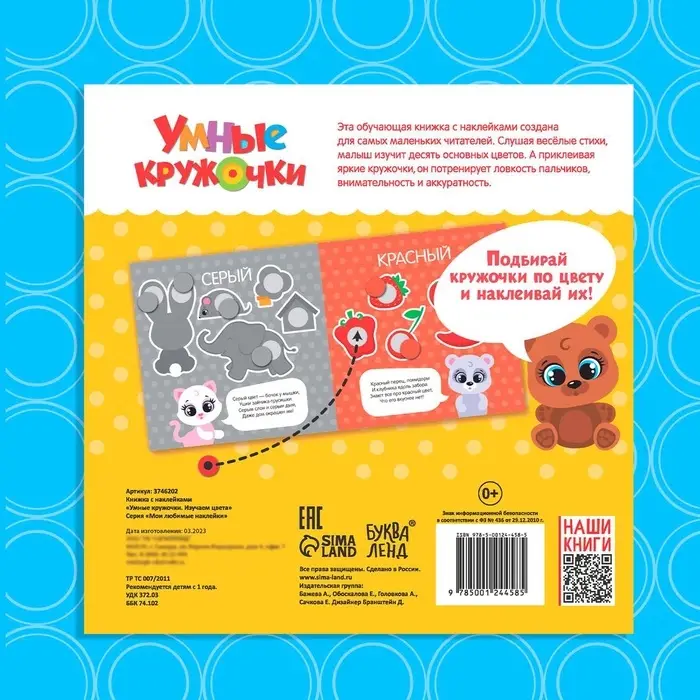 Книга с наклейками-кружочками создана для самых маленьких читателей. Приклеивая яркие кружочки, ребёнок узнает многое об окружающем его мире и потренирует ловкость пальчиков, внимательность и аккуратность.