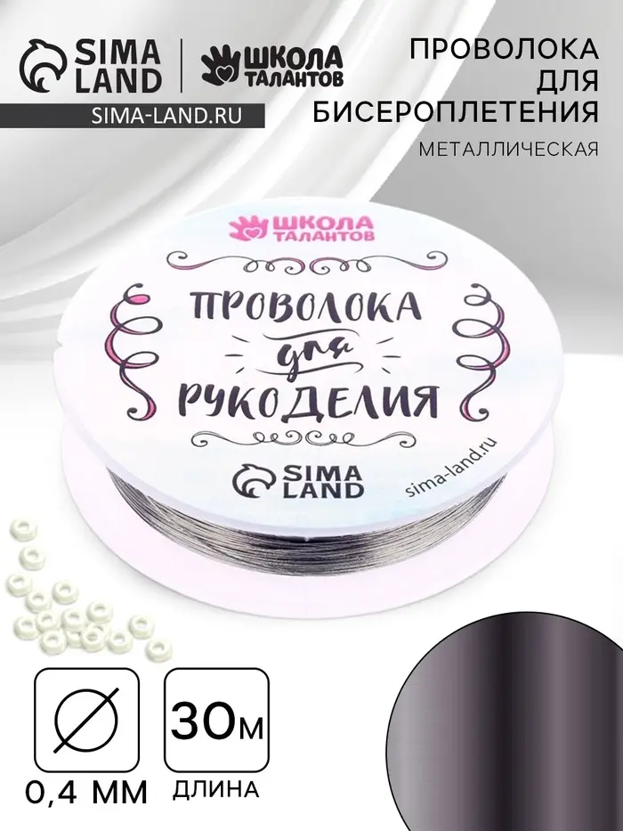 Проволока для творчества и бисероплетения, d=0.4 мм, 30 м, серебряный
