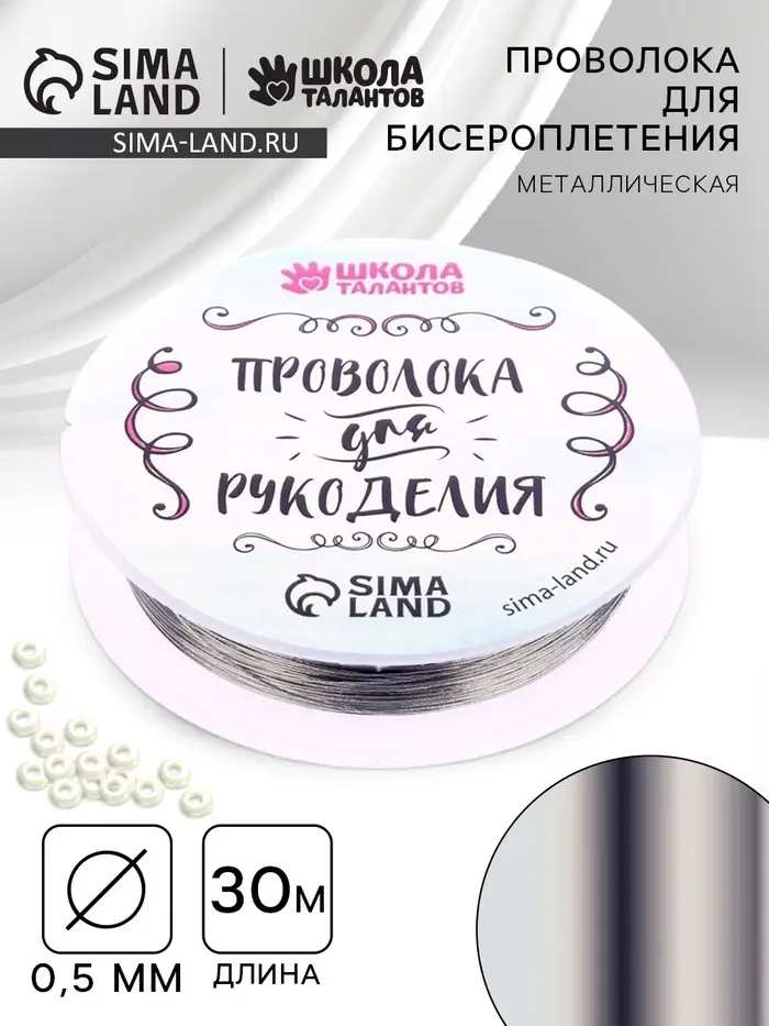 Проволока для творчества и бисероплетения, d=0.5 мм, 30 м, серебряный