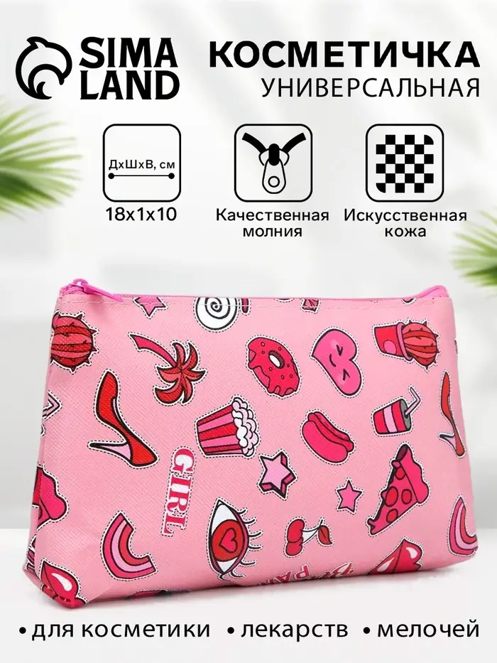 Косметичка - пенал GIRL, на молнии, плоская, маленькая, розовая