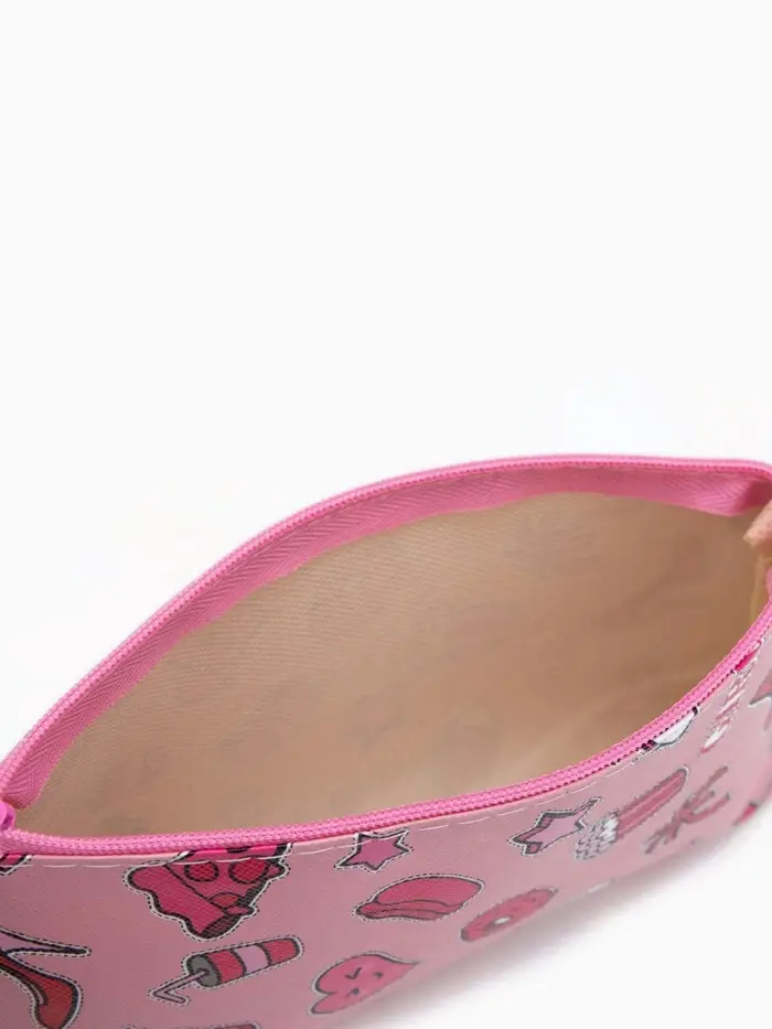 Косметичка-пенал на молнии, маленькая, с буквами, розовая