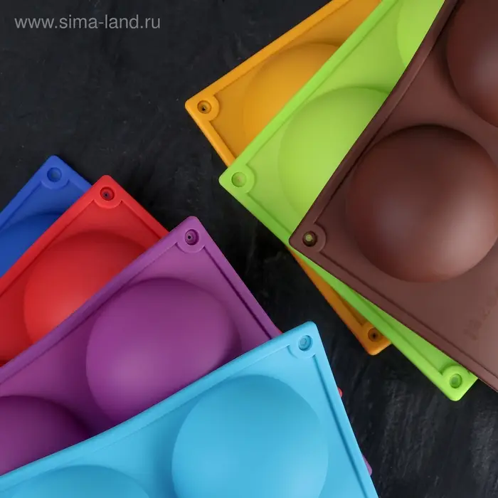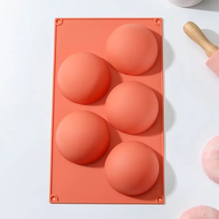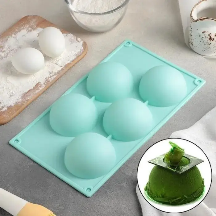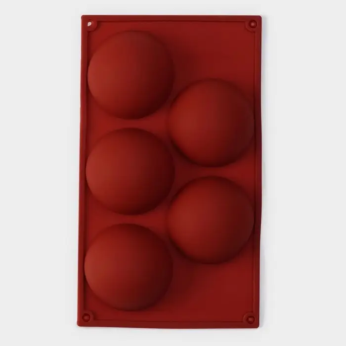 Форма для выпечки Доляна «Полусфера», силикон, 29.5×17 см, 5 ячеек, d=8 см, МИКС