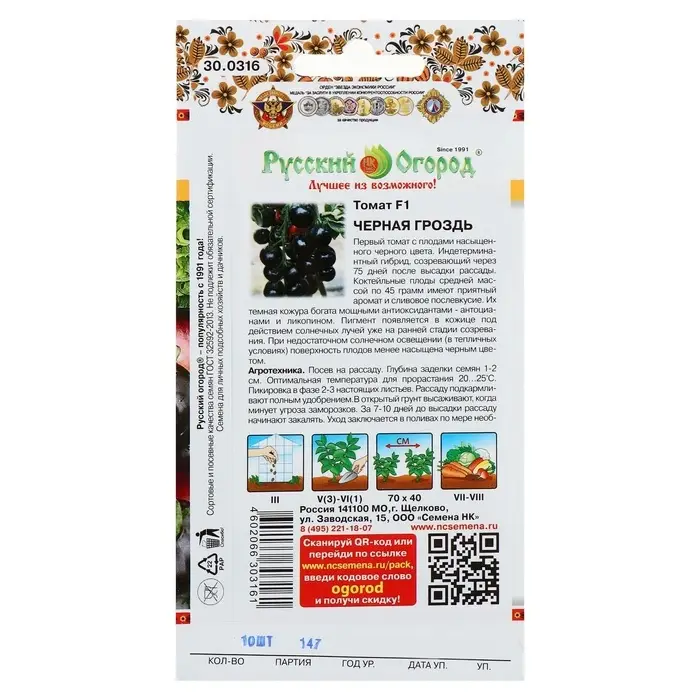 Семена Томат «Чёрная гроздь» F1, индетерминантный, высокорослый, 10 шт., «Русский огород»