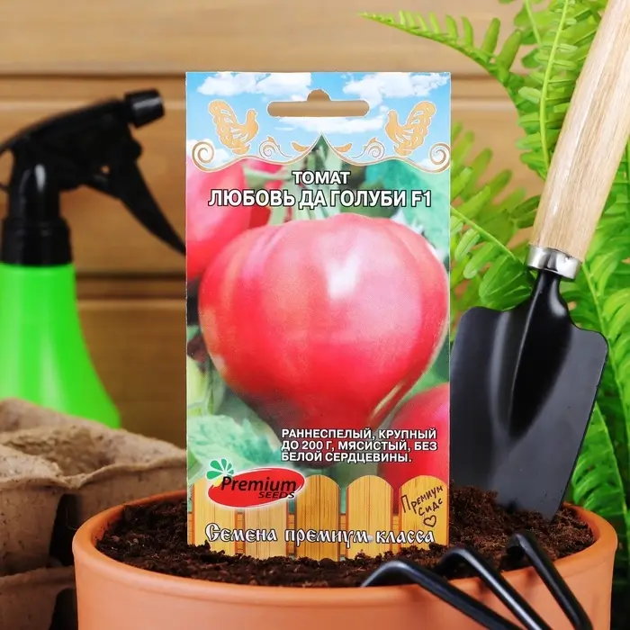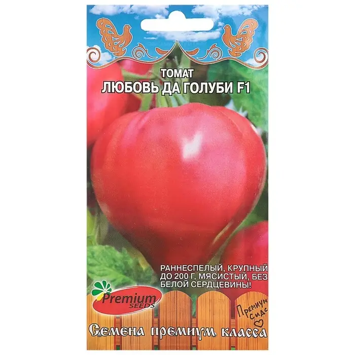 Встречаем уникальную суперновинку, роскошный гибрид нового поколения Любовь да голуби! Это раннеспелый гибрид (период от всходов до созревания 95-98 дней), индетерминатный (высота 1,8-2 м). Плоды удлинённо сердцевидные, мясистые, сахаристые, без белой сердцевины, невероятно вкусные и транспортабельные. В кисти плодынасыщенно малиновой окраски, выровненные, зреют одновременно. Урожайность 22-24 кг/м2, это но 30-40% выше чем у обычных гибридов.Гибрид устойчив к альтернариозу и ВТМ.