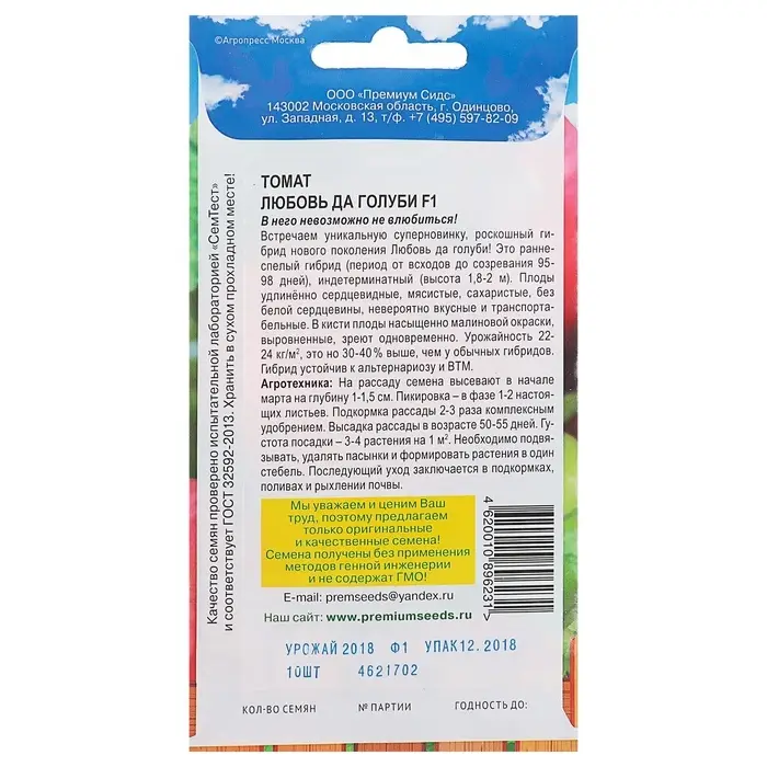 Семена Томат «Любовь да голуби F1», раннеспелый, индетерминантный, высокорослый, 0.03 г