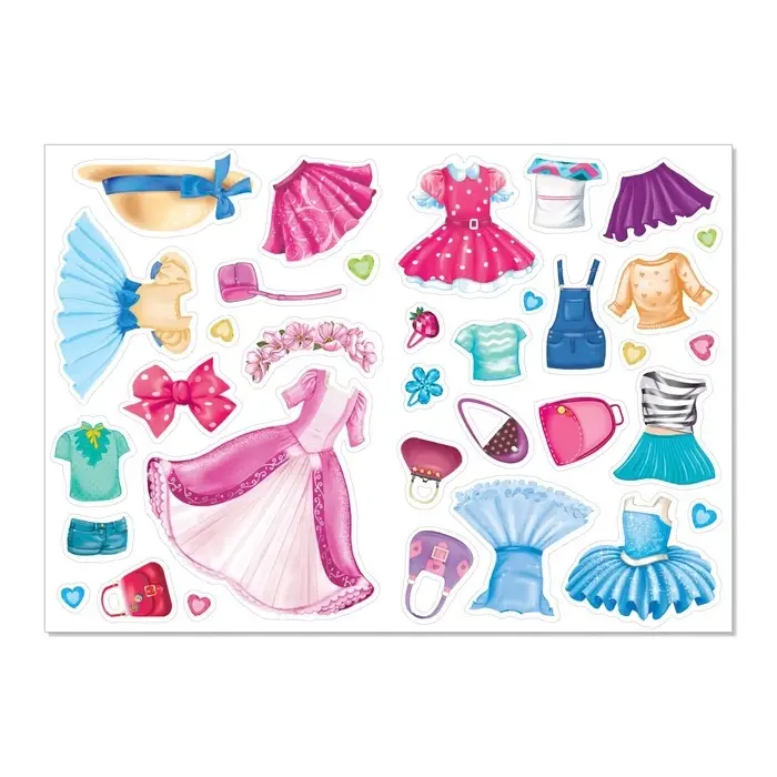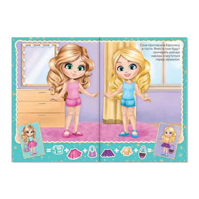 В книге малыша ждёт более 100 цветных наклеек с одеждой и аксессуарами для кукол.