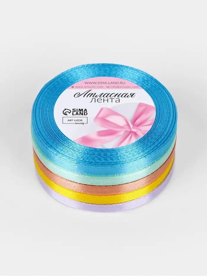 Атласная лента, набор 5 шт., 6 мм, 23±1 м