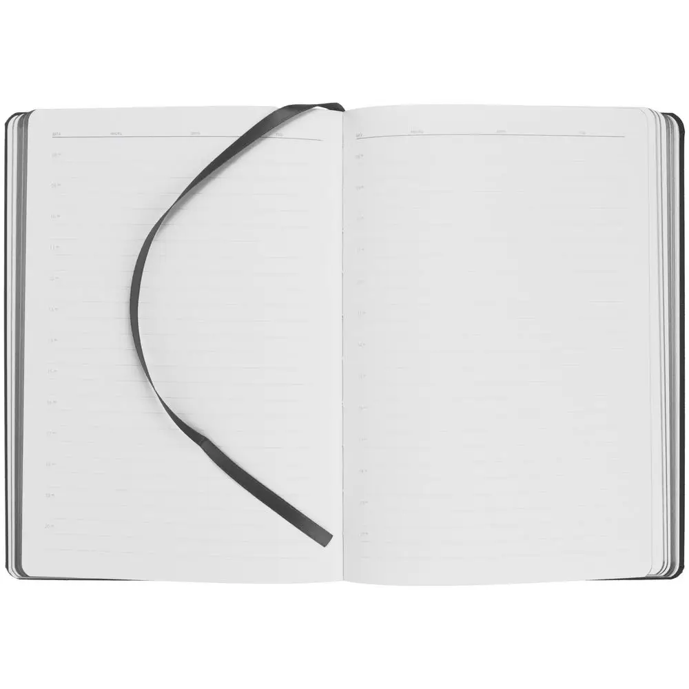 Главная особенность ежедневника Peel — лейбл из материала Soft Touch в тон обложке. На нем можно выполнить нанесение, дополнив креативное оформление фирменного ежедневника. Послание на шильде будет каждый день привлекать внимание: чтобы открыть ежедневник, нужно сдвинуть резинку, а значит — взглянуть на нее.
