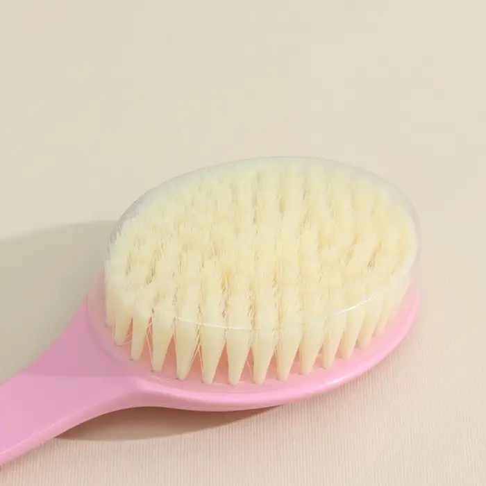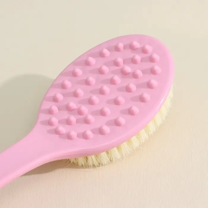 Щётка массажная для тела Доляна, с ручкой и массажёром, искусственная щетина, розовая