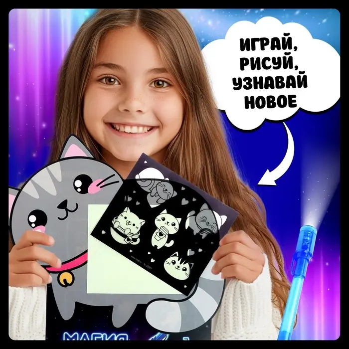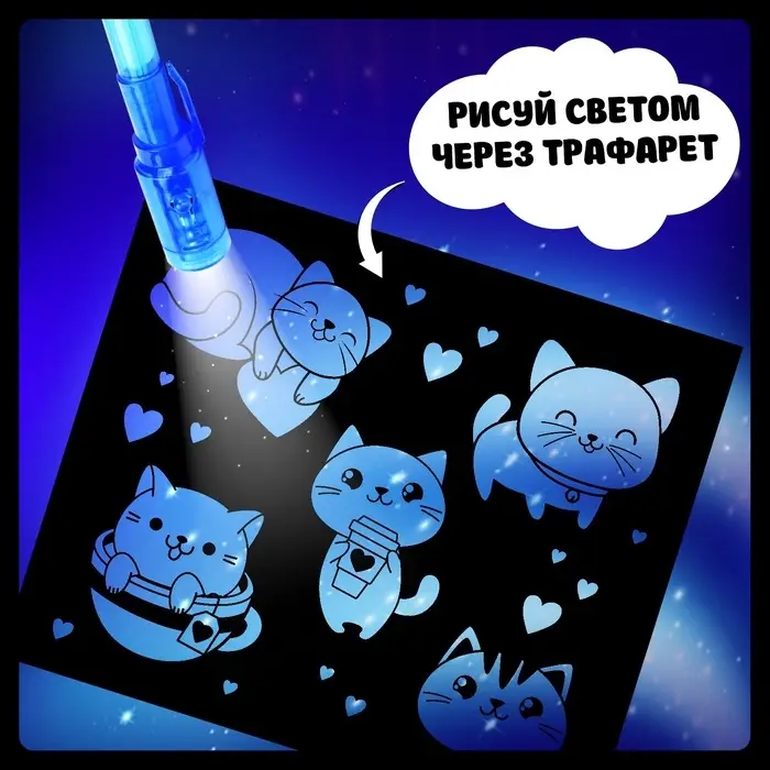 Набор для рисования светом «Котёнок», А5, ручка с фонариком и невидимыми чернилами