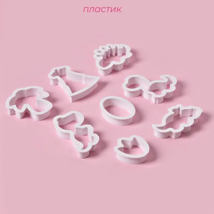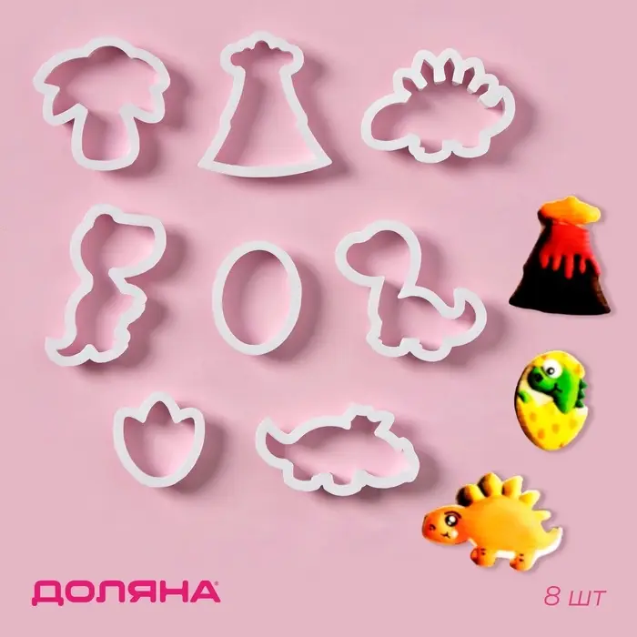 Формы для печенья Доляна «Хищные динозавры», набор 8 шт., пластик, белые