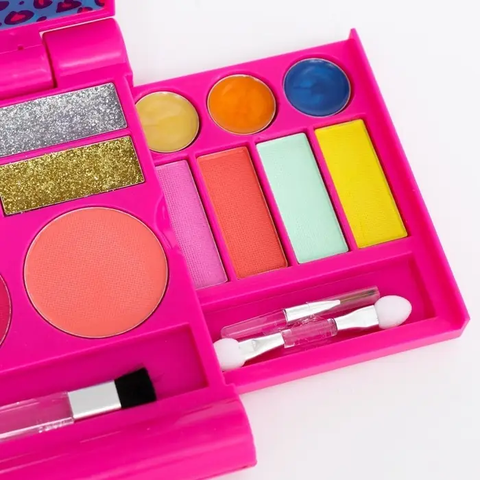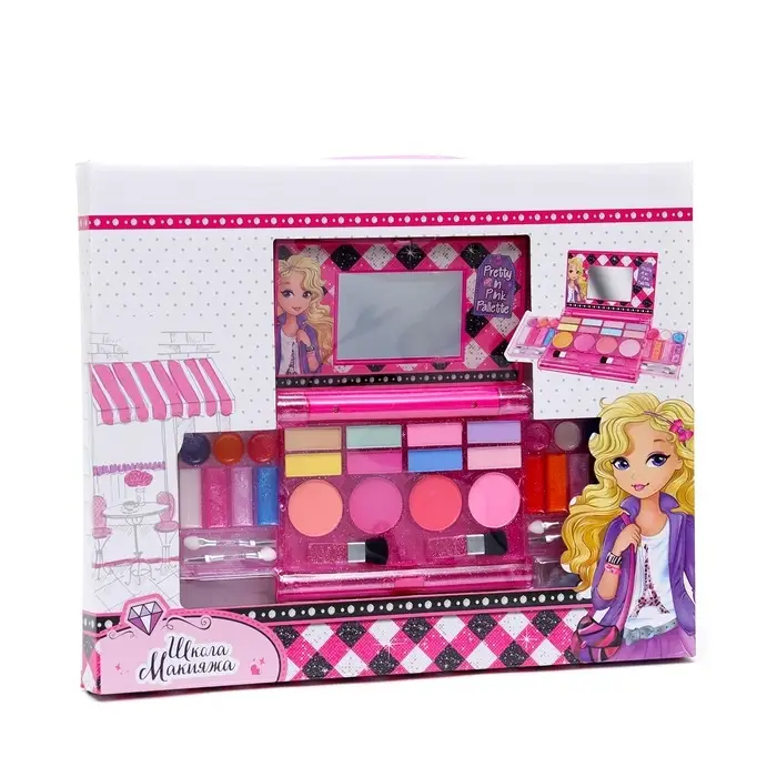 Детская косметика позволит ребёнку устраивать эксперименты со своим стилем. Набор поможет девочке подобрать оптимальные варианты для вечерних и дневных образов. Косметика без труда смывается водой или с помощью ватного диска и безопасна для детской кожи.