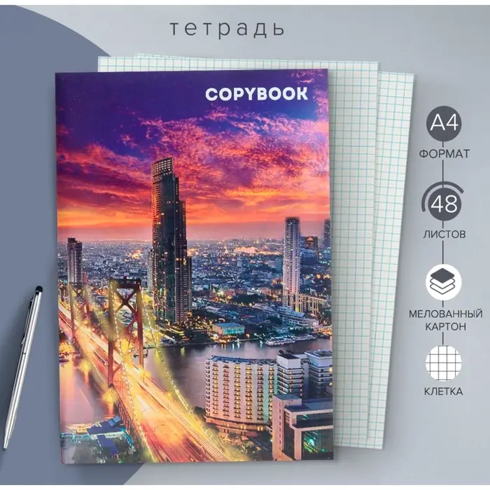 Тетрадь А4, 48 листов в клетку «Город», серые листы
