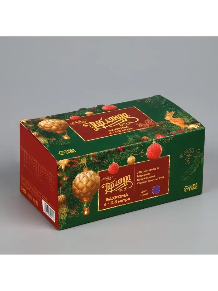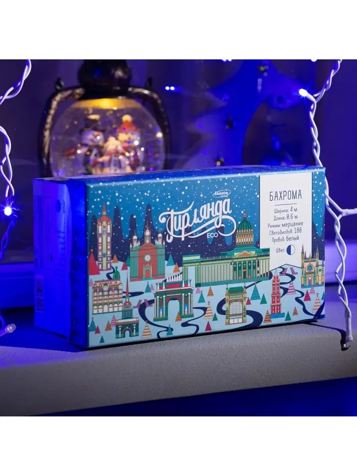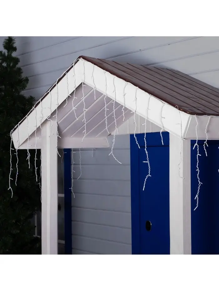 Гирлянда «Бахрома» 4×0.6 м, IP44, белая нить, 180 LED, свечение синее, мерцание белым, 220 В