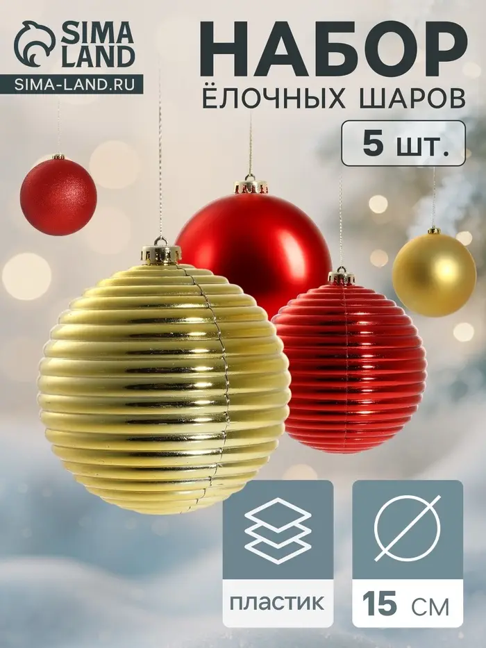 Ёлочные игрушки «Ассорти», набор 5 шт., d=15 см, красный/золотистый