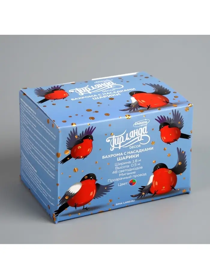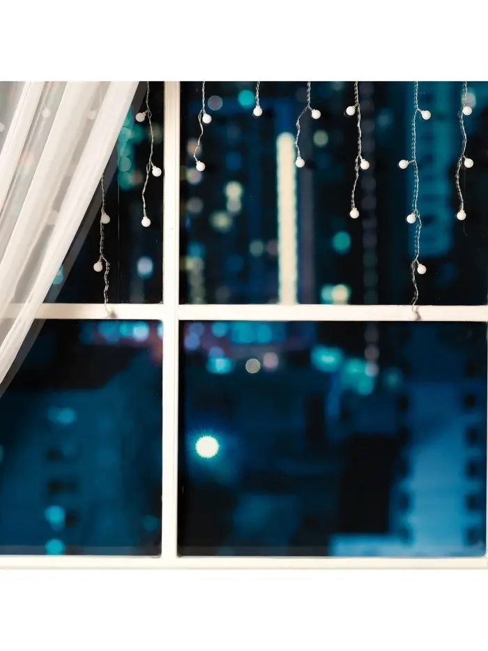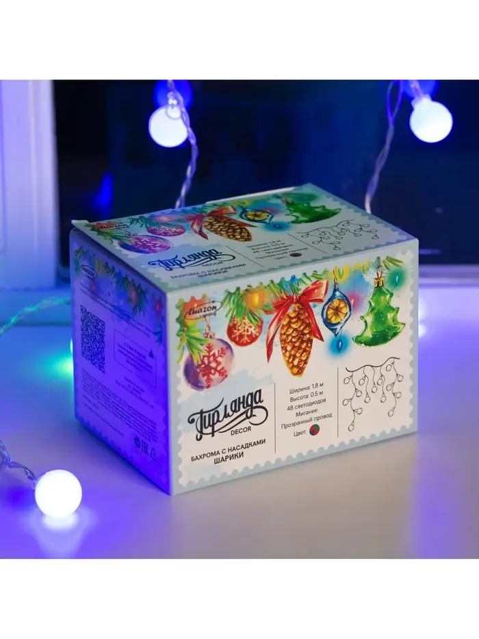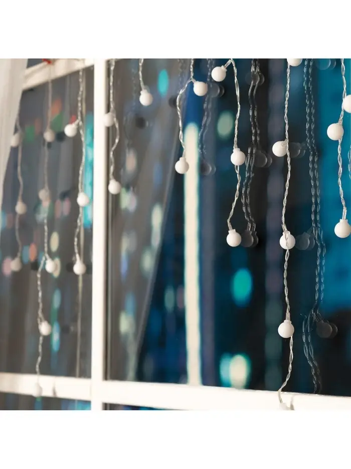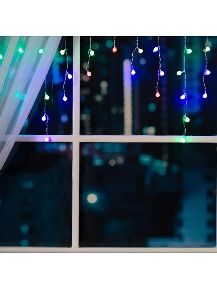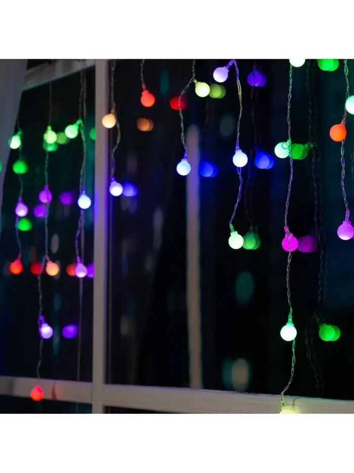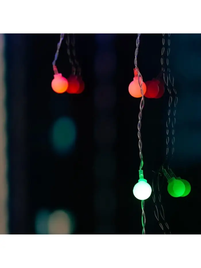 Гирлянда «Бахрома» 1.8×0.5 м с насадками «Шарики», IP20, прозрачная нить, 48 LED, свечение мульти (RG/RB), мигание, 220 В