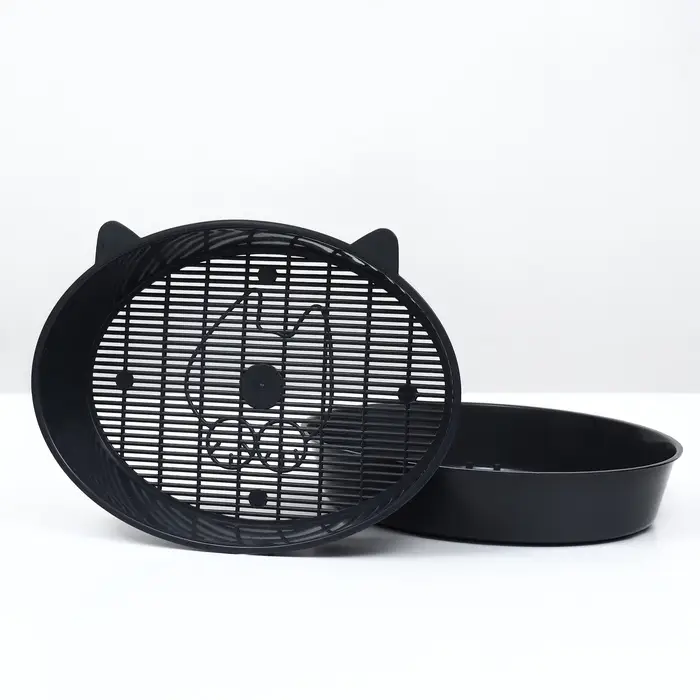 Туалет для кошек «Киса», 36×27×6 см, с сеткой, пластик, серый микс
