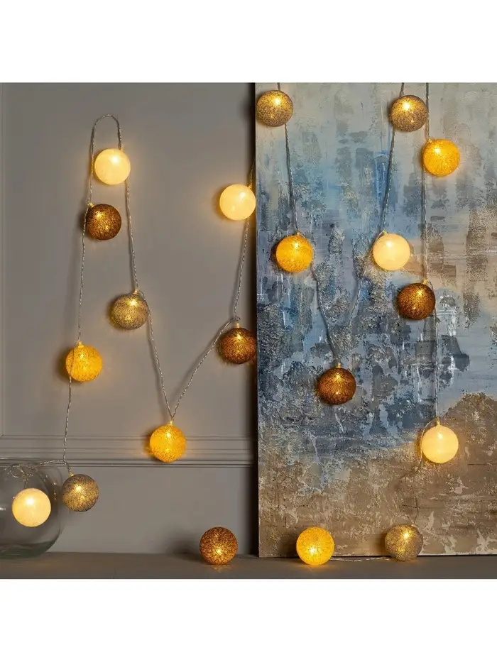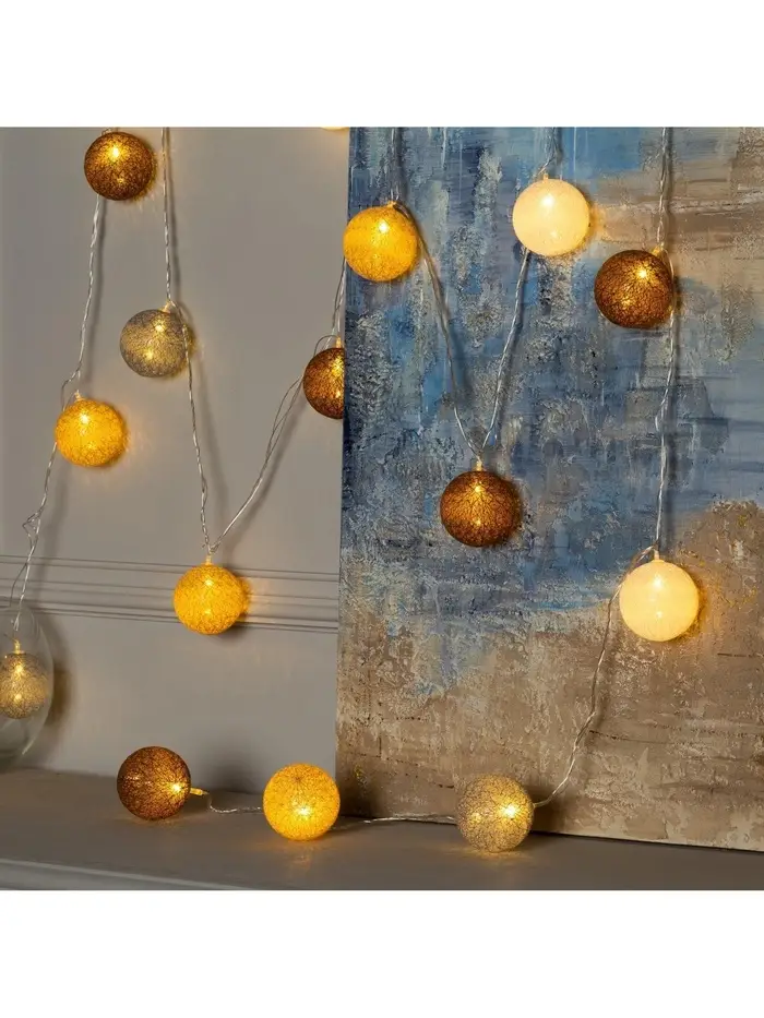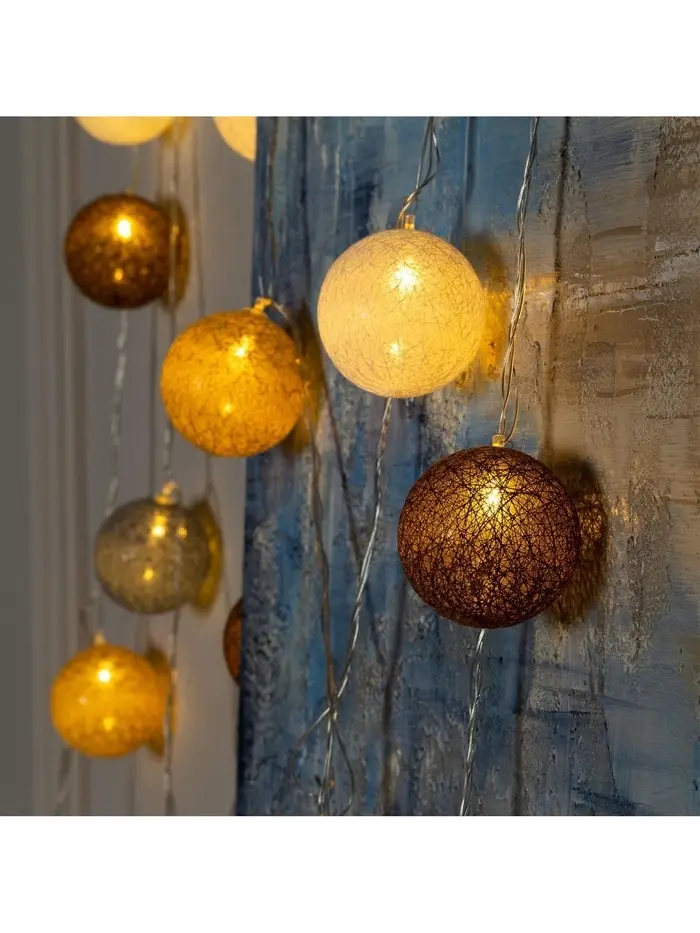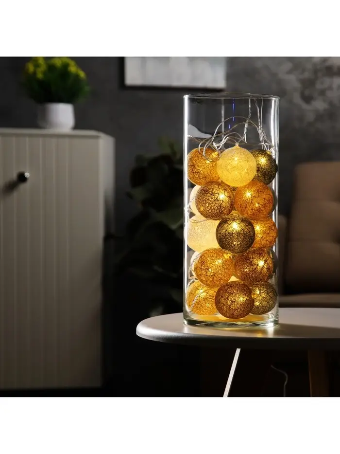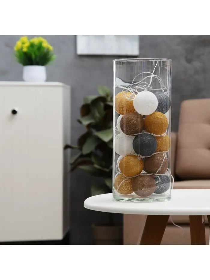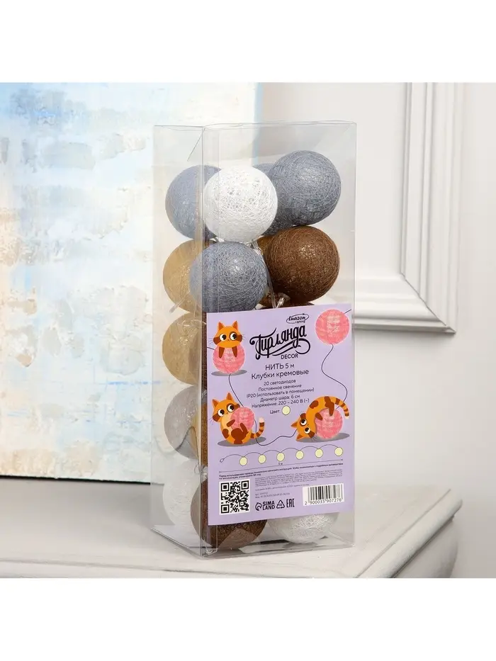 Гирлянда «Нить» 5 м с насадками «Клубки кремовые», IP20, прозрачная нить, 20 LED, свечение тёплое белое, 220 В