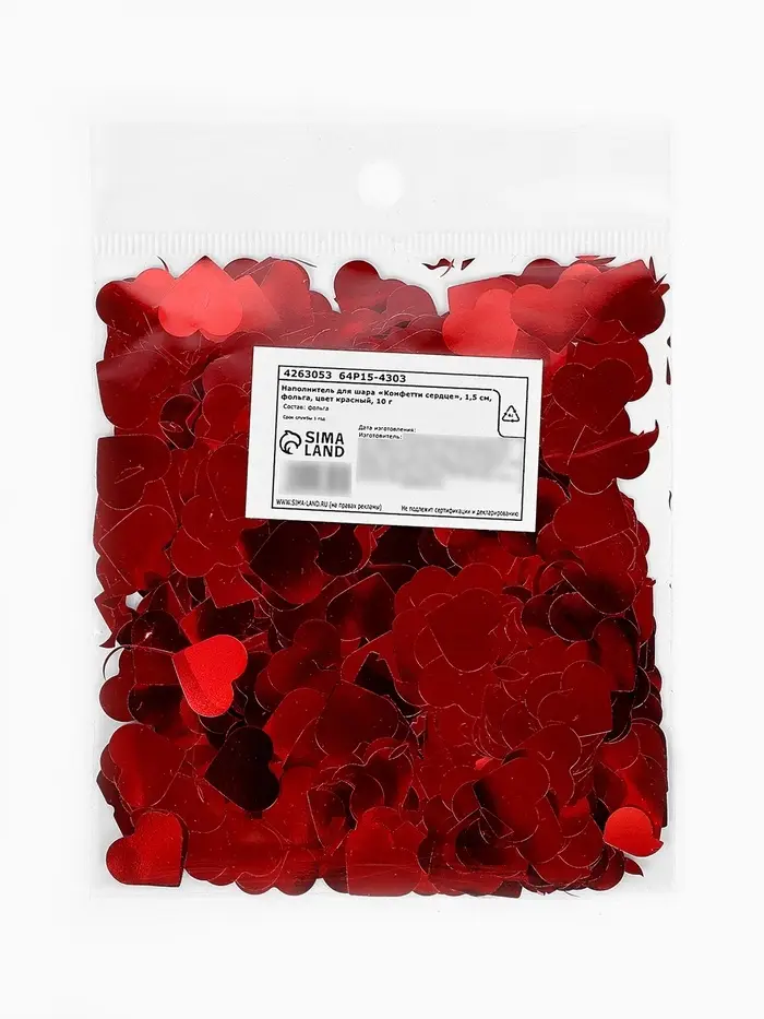 Наполнитель для шаров «Конфетти сердце», d=1.5 см, 10 г