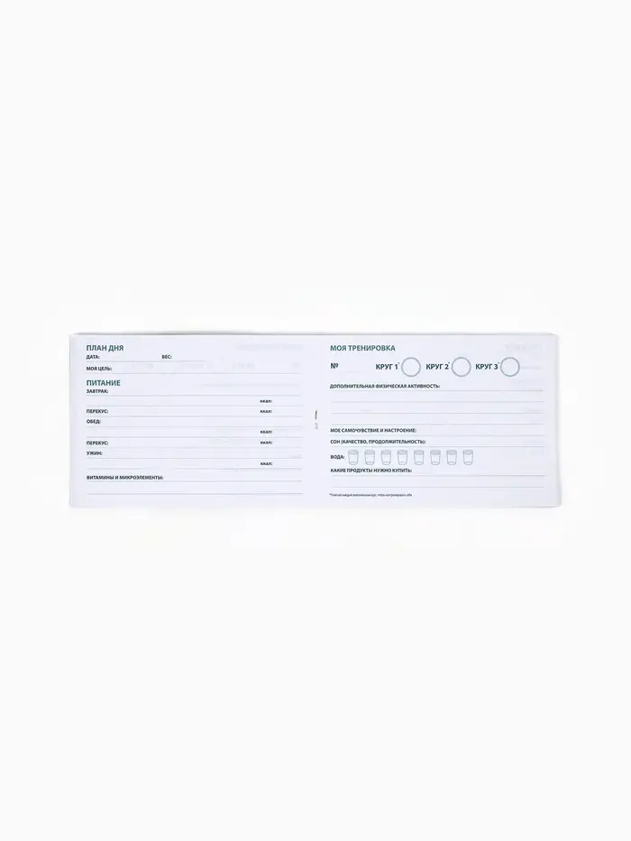 Формат А6 был выбран по рекомендации профессиональных спортсменов, каждый лист отвечает за ежедневные потребности, позволяет оставлять личные заметки и отмечать даты. С помощью дневника тренировок легко отслеживать свои результаты и достигать больших побед!