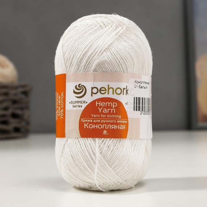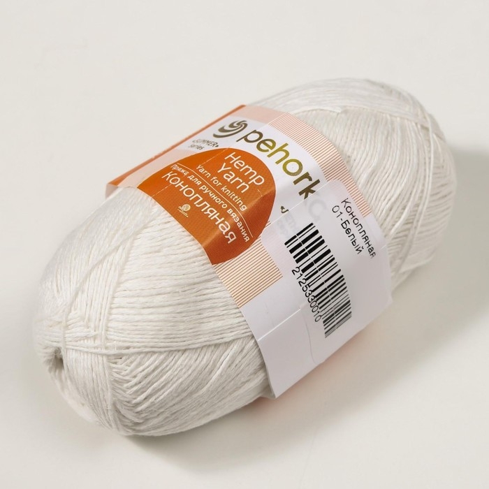 Пряжа "Конопляная" 70% хлопок, 30% конопля 280м/50гр (01 белый)
