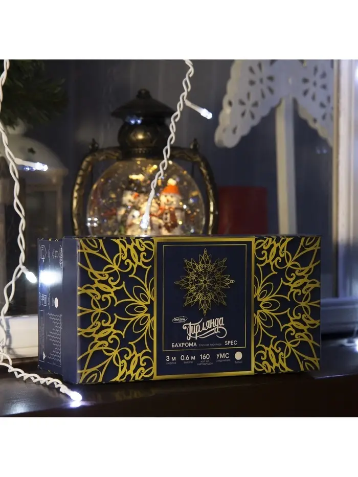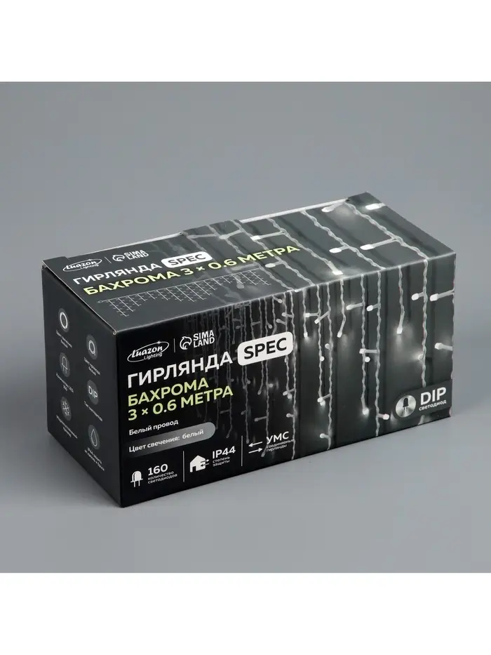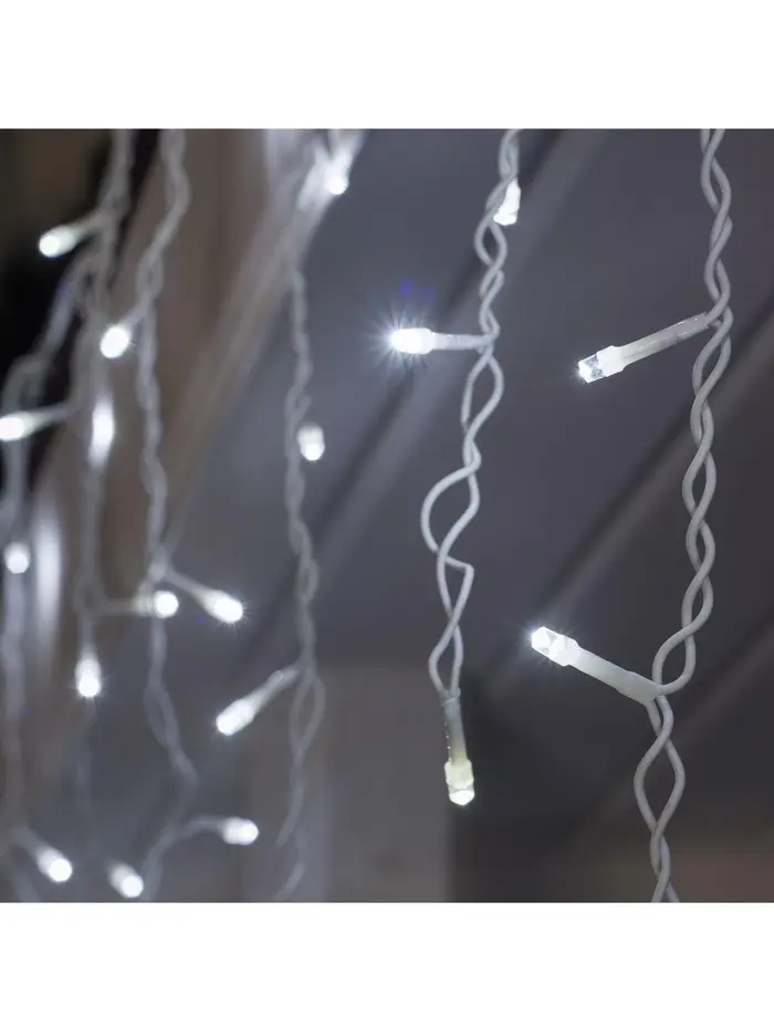 Гирлянда «Бахрома» 3×0.6 м, IP44, УМС, белая нить, 160 LED, свечение белое, мерцание белым, 220 В