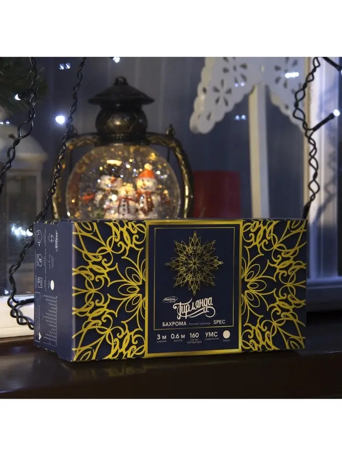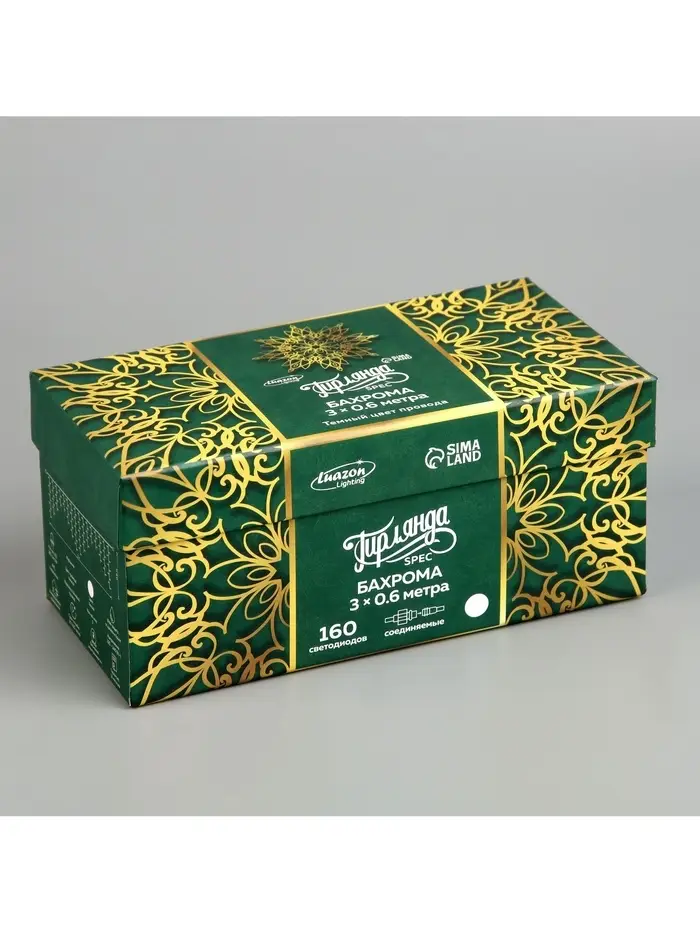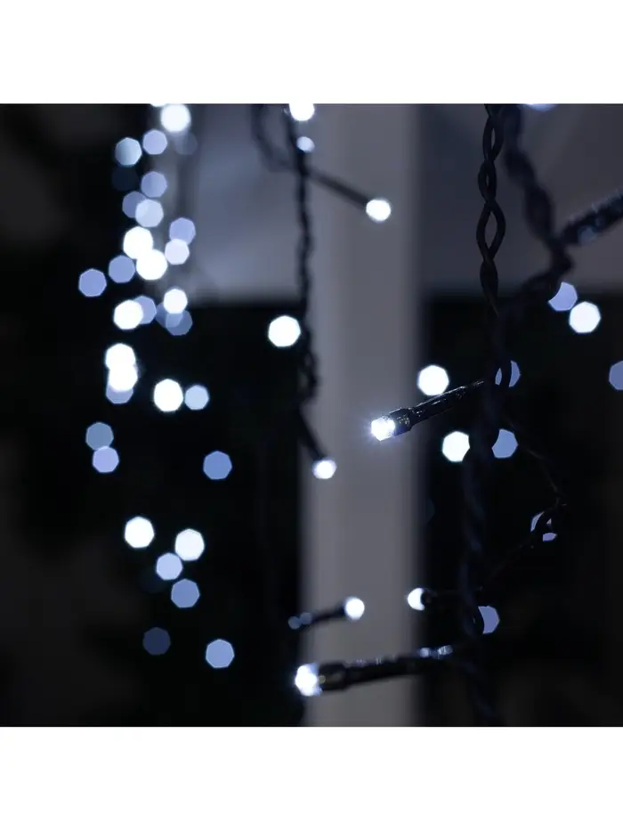 Гирлянда «Бахрома» 3×0.6 м, IP44, УМС, тёмная нить, 160 LED, свечение белое, мерцание белым, 220 В
