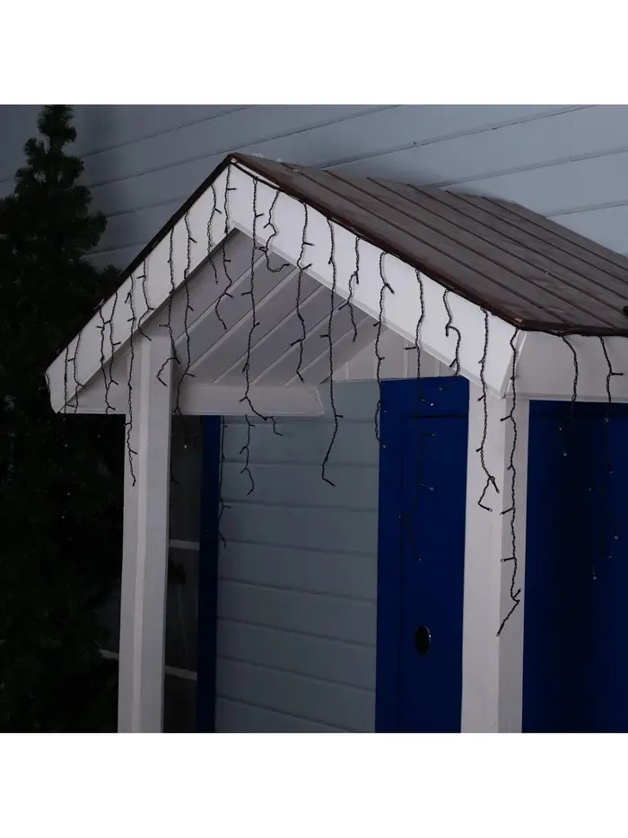 Гирлянда «Бахрома» 3×0.6 м, IP44, УМС, тёмная нить, 160 LED, свечение бело-синее, мигание, 220 В