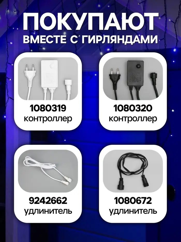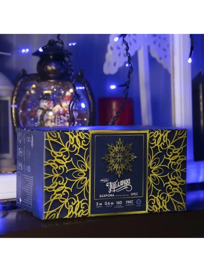 Гирлянда «Бахрома» 3×0.6 м, IP44, УМС, тёмная нить, 160 LED, свечение бело-синее, мигание, 220 В