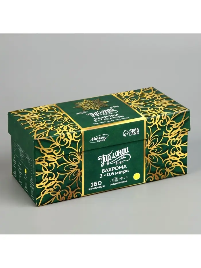 Гирлянда «Бахрома» 3×0.6 м, IP44, УМС, тёмная нить, 160 LED, свечение жёлтое, мерцание белым, 220 В