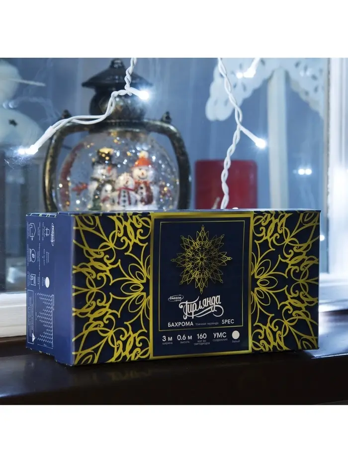Гирлянда «Бахрома» 3×0.6 м, IP44, УМС, белая нить, 160 SMD-LED, свечение белое, 220 В
