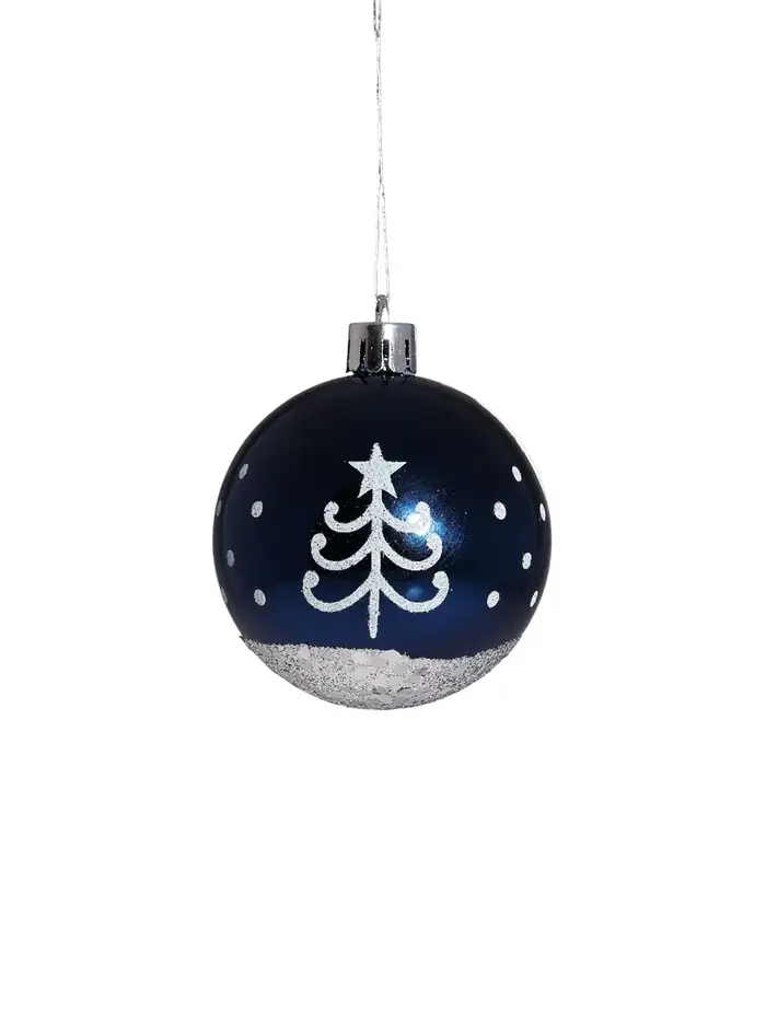 Синий набор ёлочных шаров диаметром 6 см объединяет элементы в стиле фьюжн и ар-деко, создавая выразительный и современный праздничный декор. Каждый шар украшен изящным рисунком, который подчёркивает глубину цвета и придаёт ёлке особую атмосферу.
