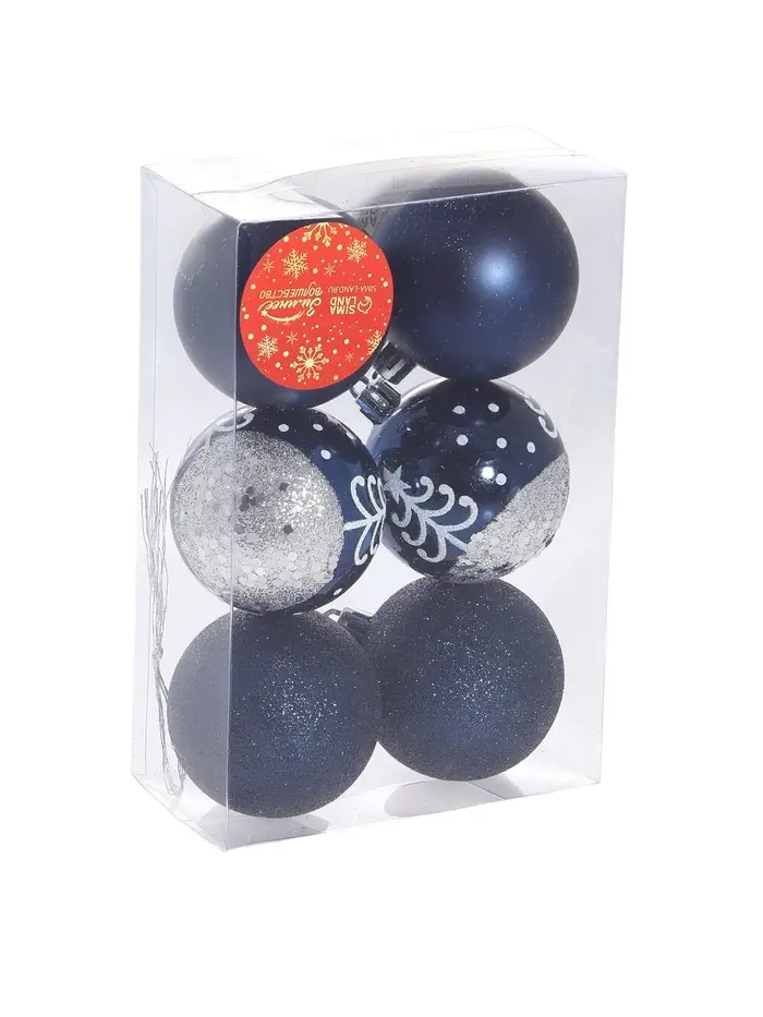 - В комплекте 6 шаров насыщенного синего оттенка с декоративным узором.