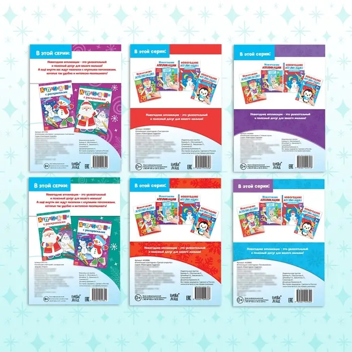 Набор «Новогодняя мастерская» — это 6 ярких книжек с аппликациями и раскрасками, которые помогут создать праздничное настроение и подготовить уникальные открытки своими руками. Каждая книжка превращается в 4 готовые аппликации, которые станут приятным сюрпризом для близких или украшением дома.