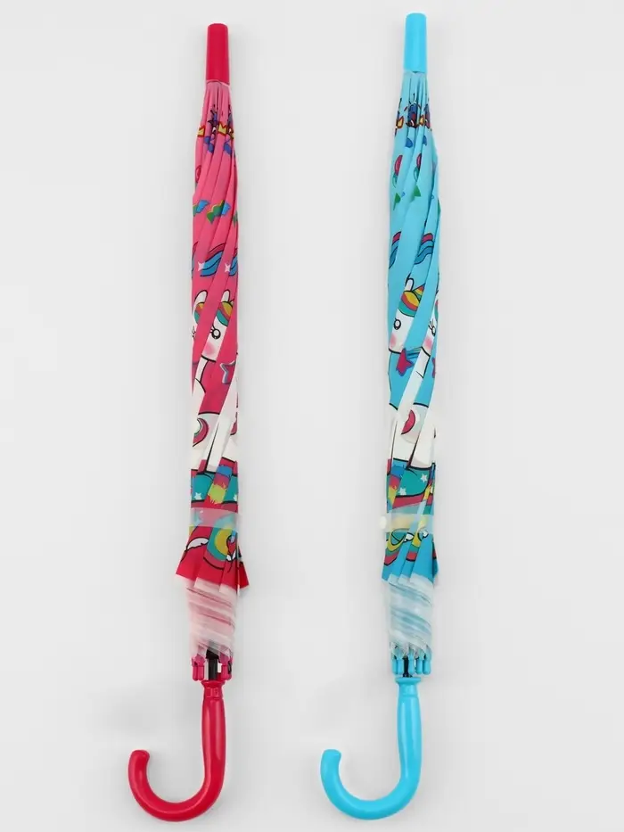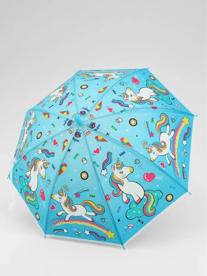 Зонт - трость детский «Радужный единорог», полуавтоматический, 8 спиц, R=39/47 см, d=78 см, МИКС