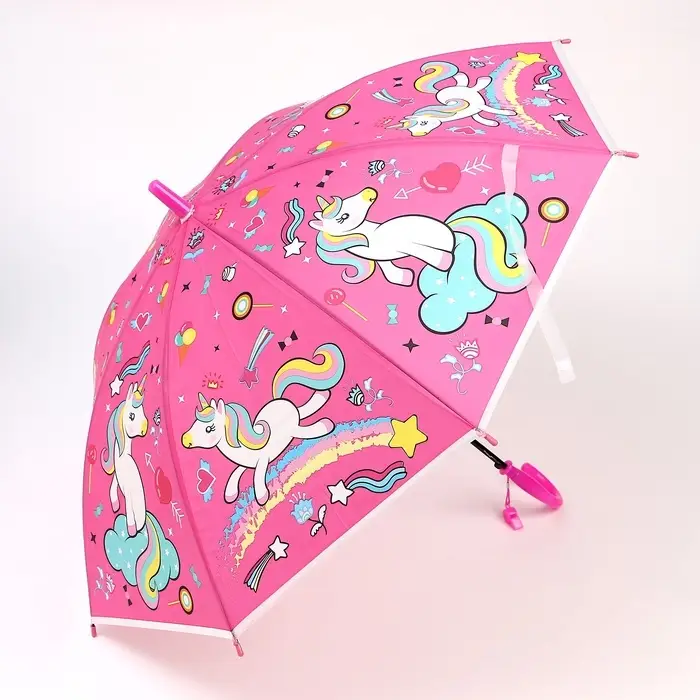 Зонт - трость детский «Единорог с радугой», полуавтоматический, 8 спиц, R=40/47 см, d=80 см, розовый