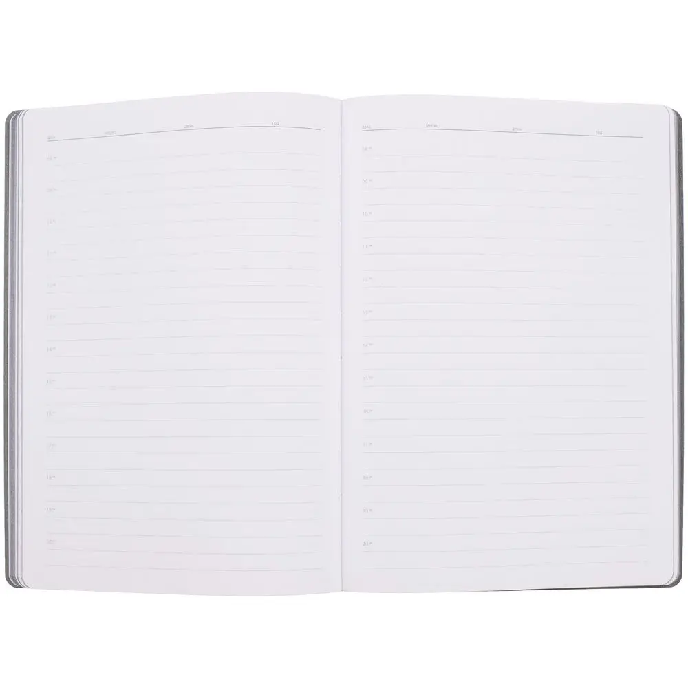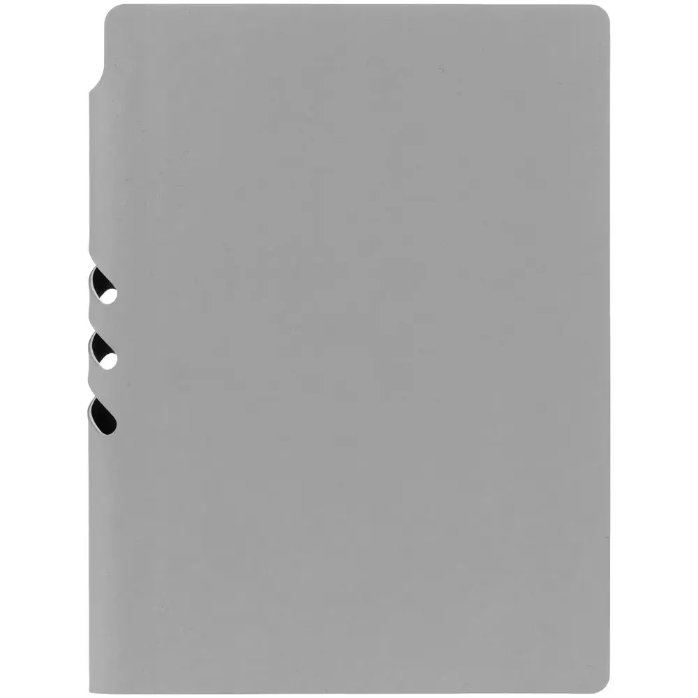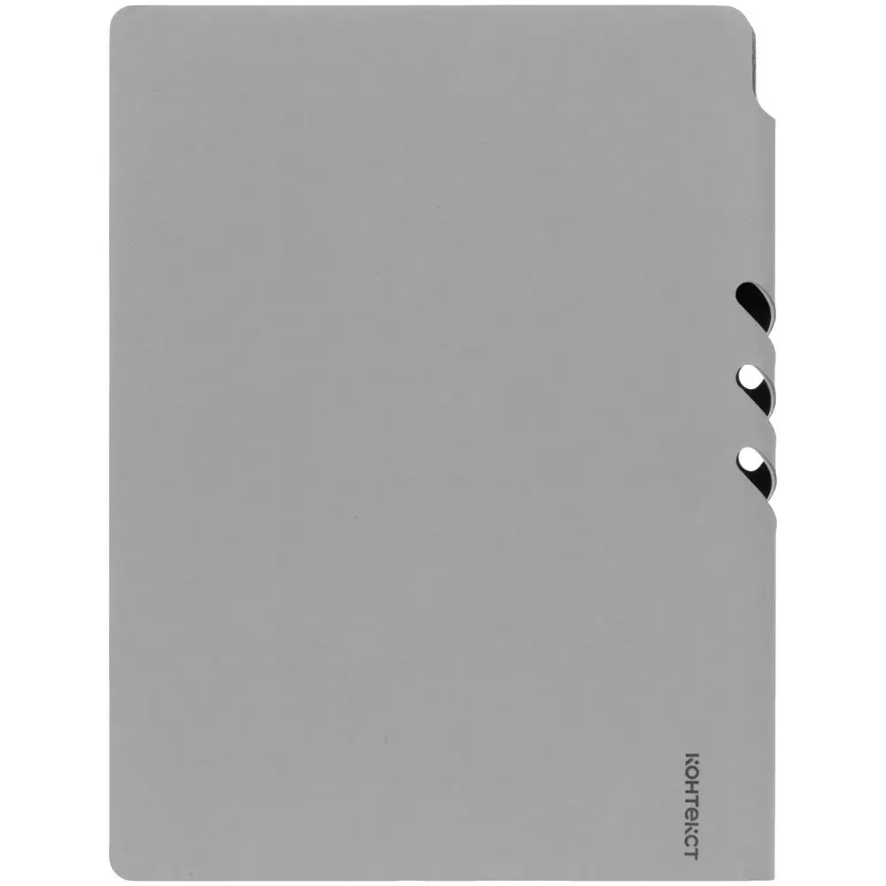 Гибкая обложка выполнена из материала Soft Touch, серый СС и Latte, серый СС (внутренняя часть обложки). Внутри корешка — специальное место для крепления ручки размером до 15х1 см.