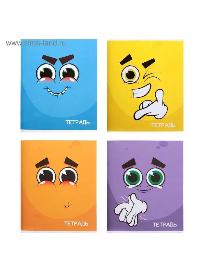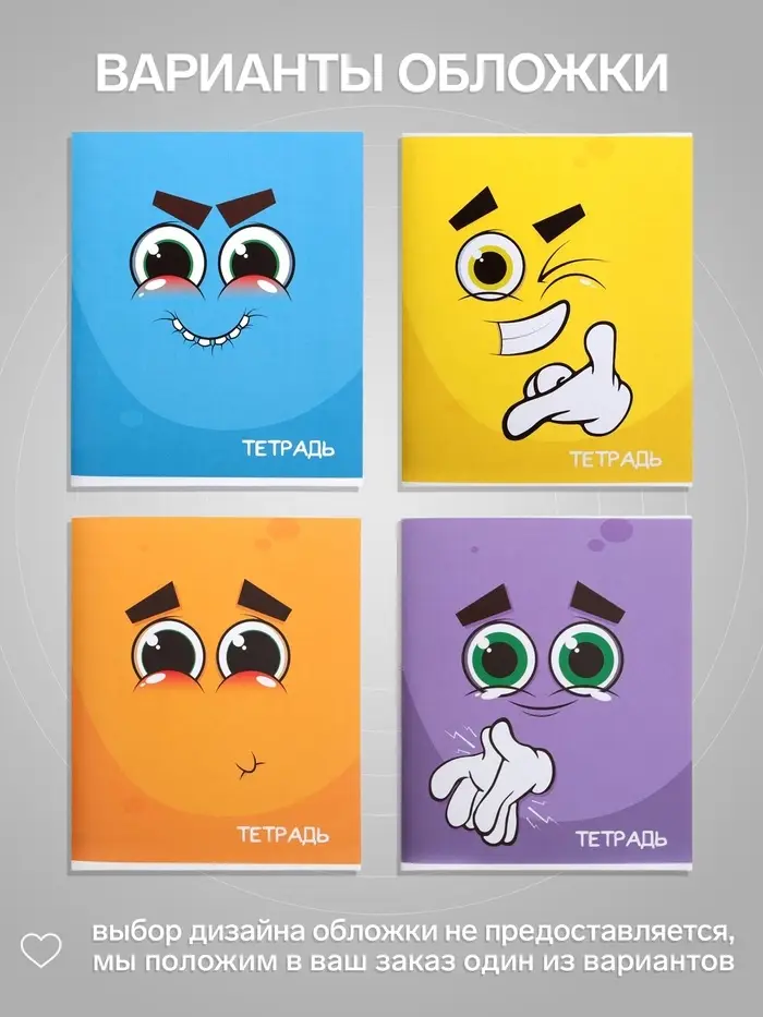 Комплект тетрадей из 10 штук (5 видов по 2 штуки), 48 листов в клетку Calligrata «Смайлики», обложка мелованный картон, блок офсет