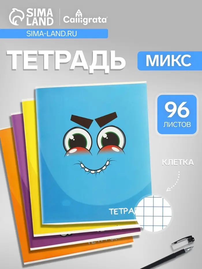 Тетрадь 96 листов в клетку Calligrata «Смайлики», обложка мелованный картон, блок офсет, МИКС