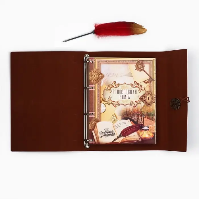 Родословная книга в шкатулке с пером и чернильницей «Древо», 56 листов, 26×24×7 см
