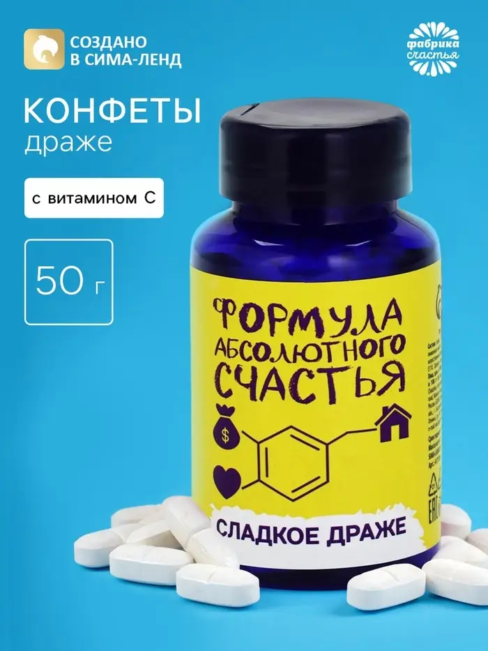 Драже Конфеты - таблетки «Формула счастья»: 50 г