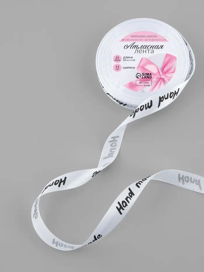 Белая атласная лента с надписью ”” помогает подчеркнуть индивидуальность подарка или изделия ручной работы. Нейтральный цвет гармонично сочетается с любыми материалами и оттенками, а лаконичный дизайн делает её уместной как в праздничных упаковках, так и в декоративных проектах для дома или мастерской.