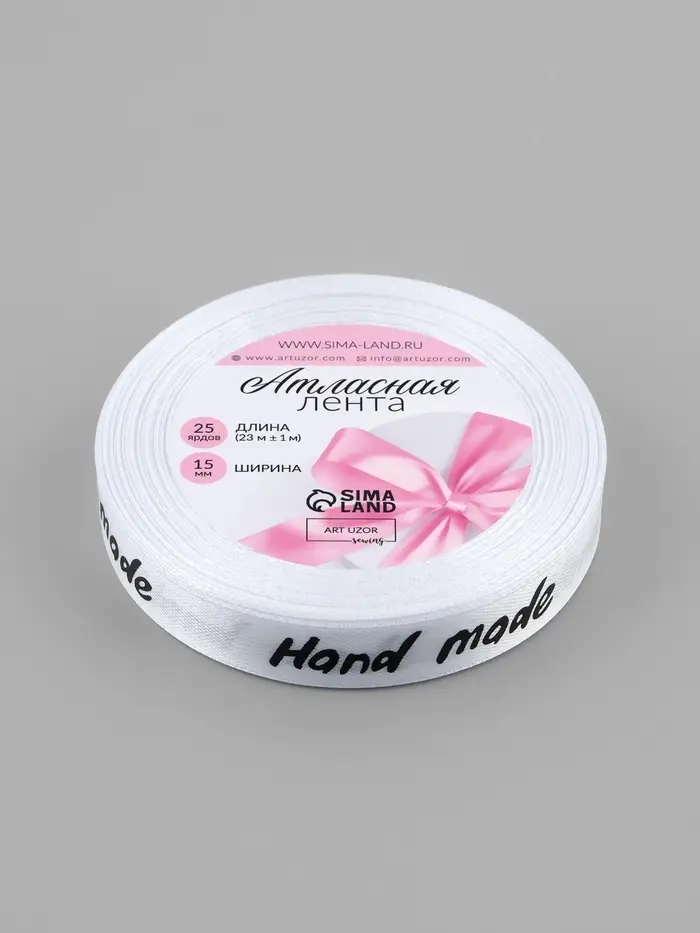Лента атласная Hand Made, 15 мм, 23±1 м, белая