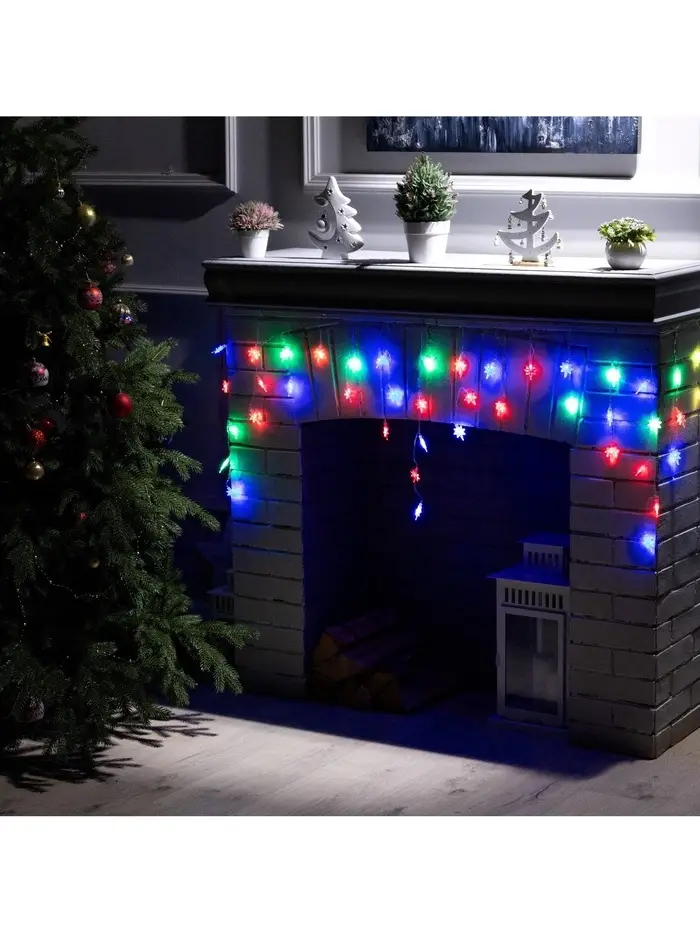 Гирлянда «Бахрома» 1.8×0.5 м с насадками «Звёзды», IP20, прозрачная нить, 48 LED, свечение мульти (RG/RB), мигание, 220 В