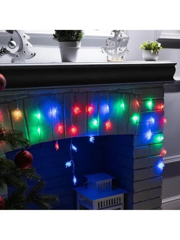Гирлянда «Нить» 5 м с насадками «Снежинки малые», IP20, прозрачная нить, 20 LED, свечение мульти (RG/RB), мигание, 220 В