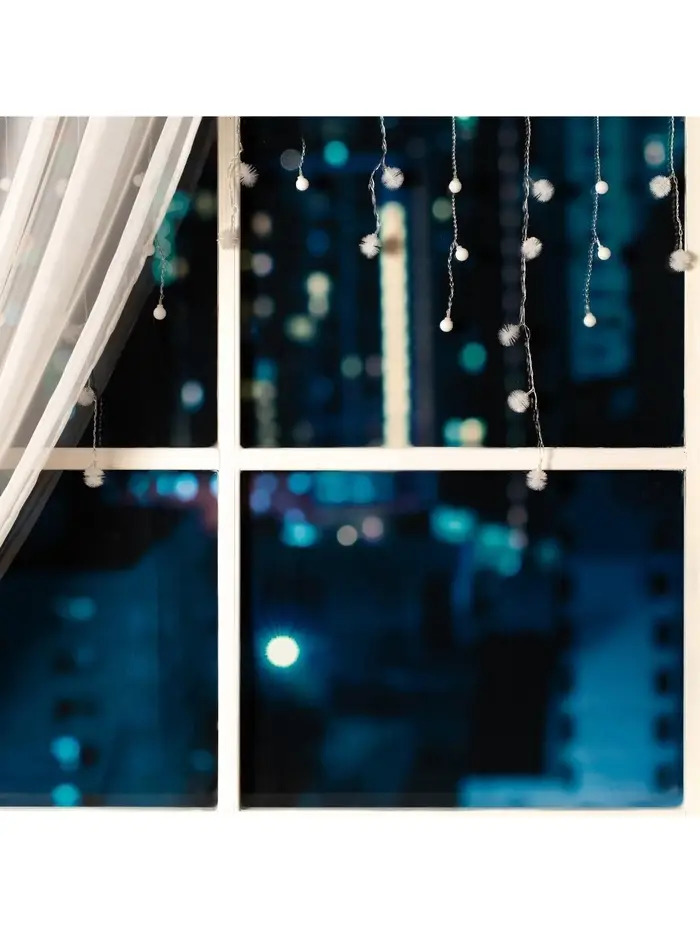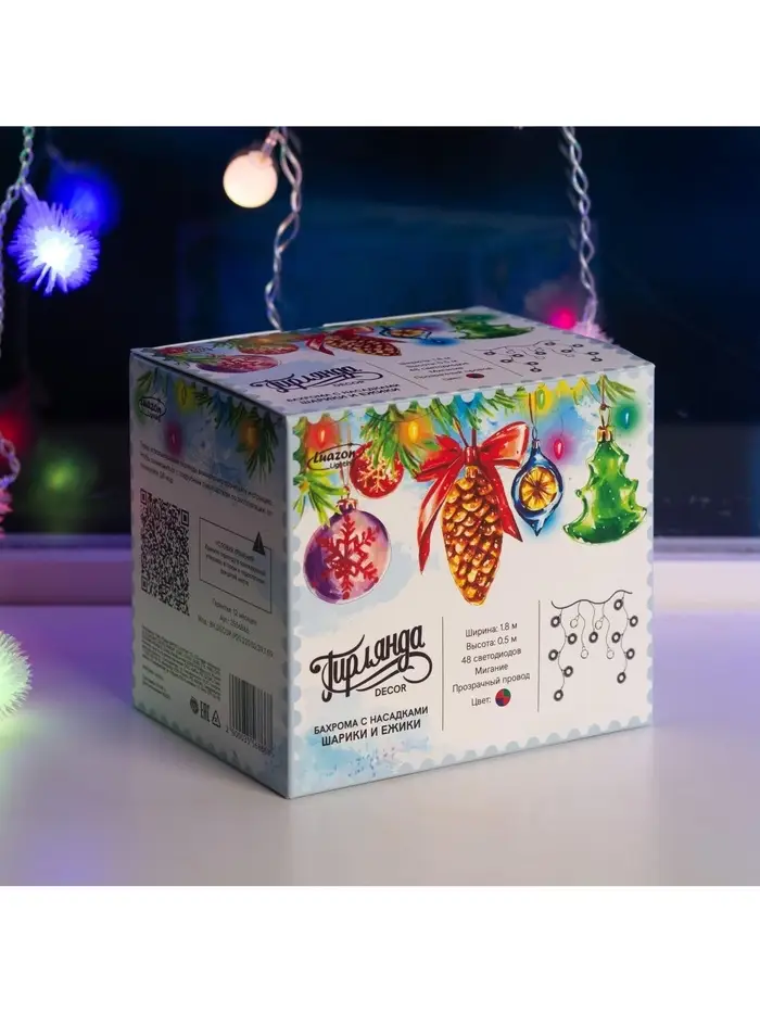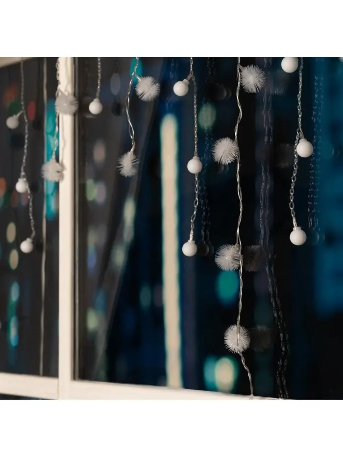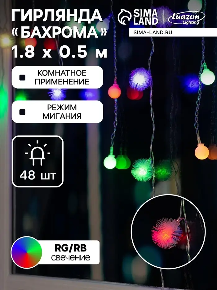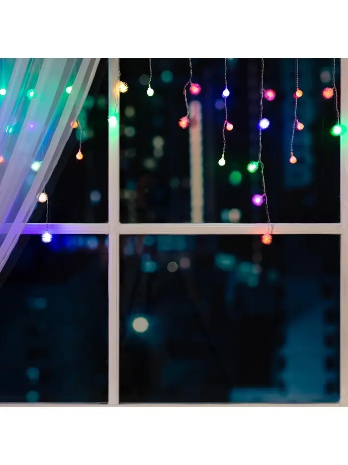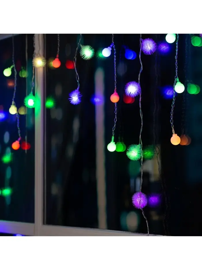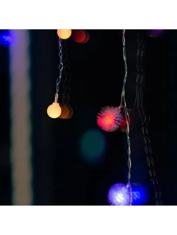 Гирлянда «Бахрома» 1.8×0.5 м с насадками «Шарики и ёжики», IP20, прозрачная нить, 48 LED, свечение мульти (RG/RB), мигание, 220 В