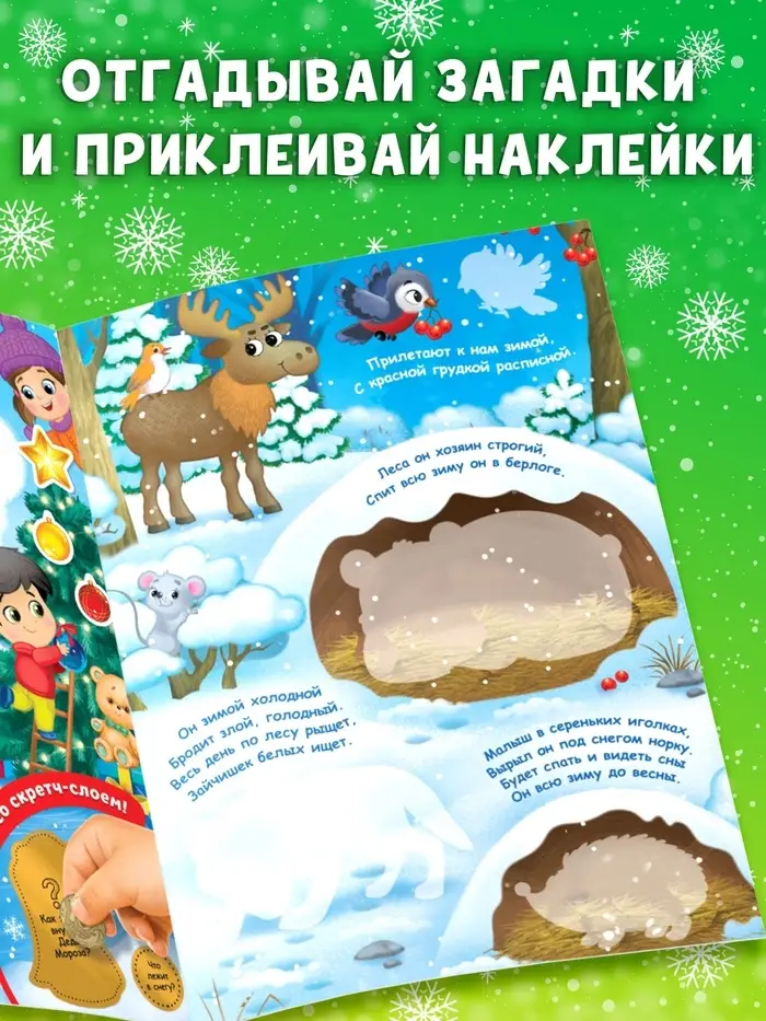 Книжка «Зимние загадки», со скретч слоем и многоразовыми наклейками